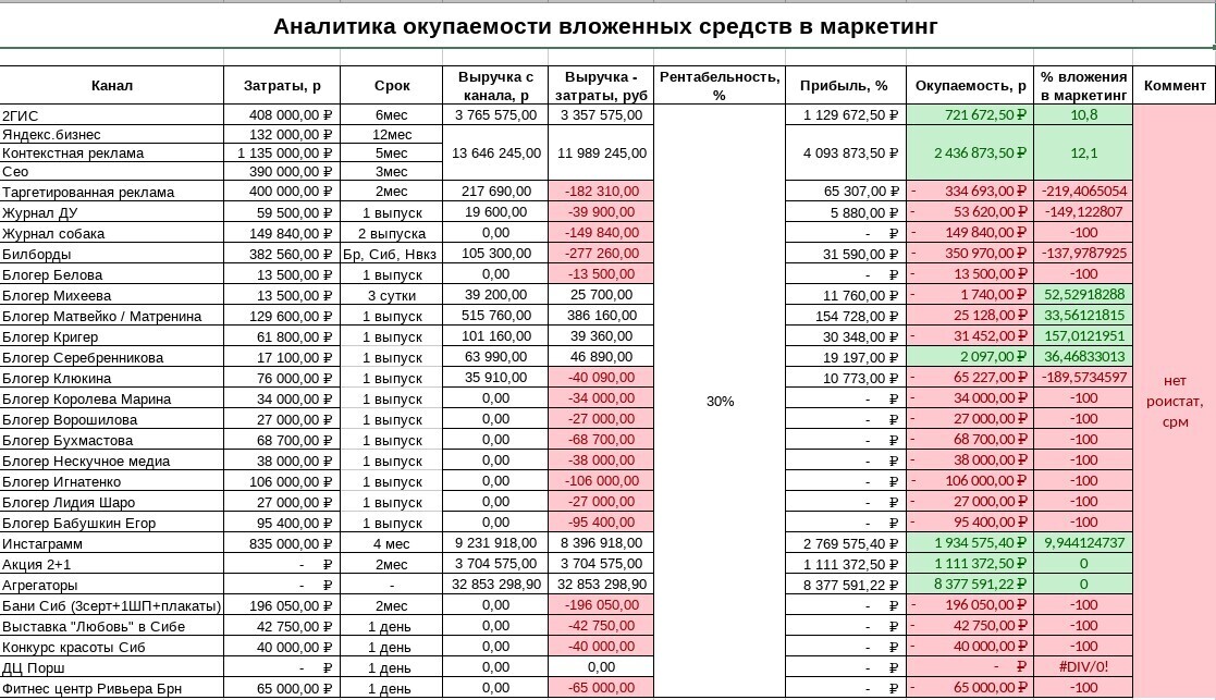 Привожу реальную окупаемость вложений в маркетинг, когда собственники периодами не хотят слышать маркетологов, им кажется, что мы не догоняем чего-то, и дружно сливаем бюджет …. в яму.